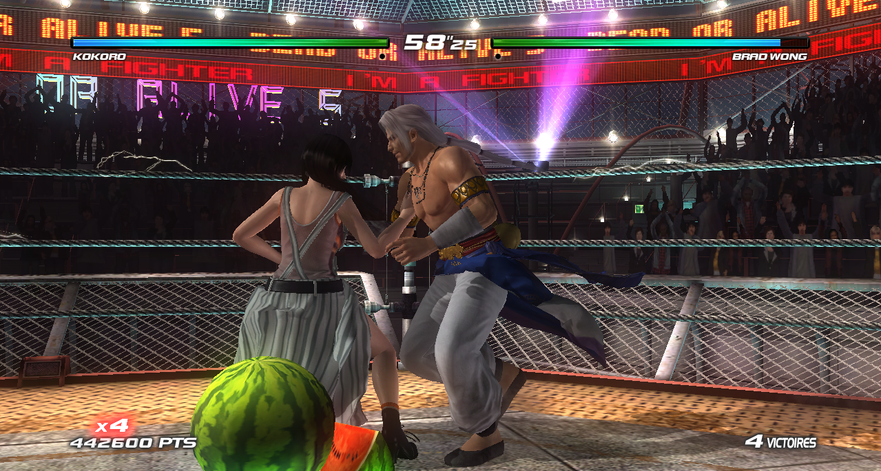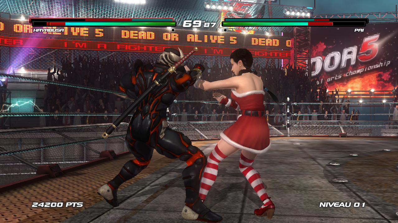 La Team Ninja peut sembler agaçante. On lui reproche d’être fainéante, légitimement peut-être… Depuis le départ de Tomonobu Itagaki, le degré de finition ne semble plus être le même : ainsi, que ça soit pour Dead or Alive 5 ou Ninja Gaiden 3, il a fallu sortir plusieurs versions pour arriver à l’oeuvre espérée au départ. Si les produits finaux sont convaincants, le portefeuille du joueur, lui, en prend en coup. Mais je préviens d’emblée : le but de ce test ne sera pas de dire que ce jeu comporte un tel nombre d’ajouts par rapport à Dead or Alive 5 : Ultimate, ou d’établir un quelconque rapport qualité/prix qui n’a pas de sens. Ce qu’ont fait malheureusement la majorité des sites spécialisés jeux vidéo avec des tests et surtout des notes qui ne reflètent absolument pas la véritable valeur du produit – en sortant quelques énormités au passage pour certains, parce que ça serait dommage de se contenter de mal considérer le jeu. Un jeu qui est la version améliorée d’un autre ne mérite pas une note inférieure à la version d’origine. C’est une question de logique, non ? Donc, évacuons la question tout de suite : si vous avez acheté Dead or Alive 5 : Ultimate, l’acquisition de cette présente version n’est effectivement pas « obligatoire ». À la limite, si vous n’aviez pris aucun DLC (dont les trois nouveaux personnages, donc), ça peut valoir le coup puisque tous sont inclus dans Last Round. Sinon, les ajouts ne sont pas extrêmement nombreux, il faut bien l’avouer. En revanche, pour les personnes n’ayant que Dead or Alive 5, ça vaut tout de même le détour, puisqu’ils profiteront des ajouts des deux versions suivantes, ce qui est plutôt conséquent ! Et, forcément, pour les joueurs amateurs de bastonnade ne s’étant procuré aucune version de DOA5, celle-ci s’imposera presque comme une évidence.