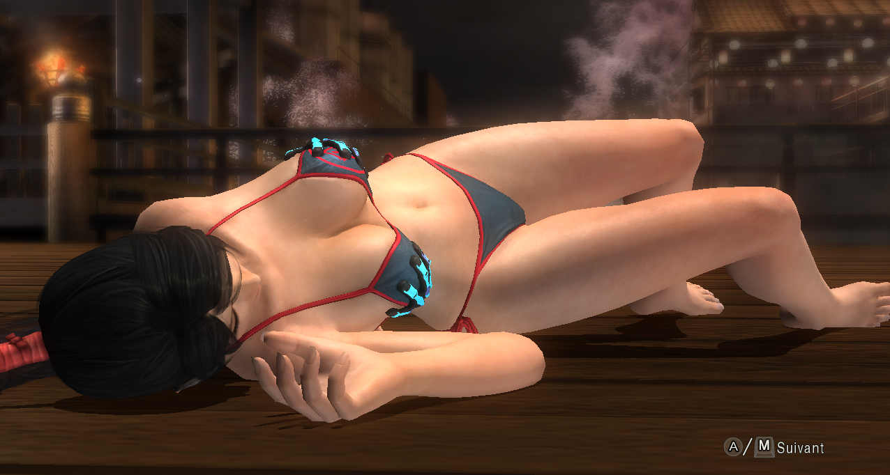 Si les DLC de la version Ultimate sont inclus dans Dead or Alive 5 : Last Round, ne croyez toutefois pas que que la Team Ninja s’en arrête là. En effet, les DLC continuent d’affluer pour ce dernier opus en date… Il s’agit généralement de packs de costumes (avec le lot de tenues sexys nécessaires pour mieux faire vendre, en principe) vendus à des prix disons pas très charlies. Ce qui est dommage, c’est qu’on a la sensation de se faire troller avec l’onglet « Paradis privé » du menu des vidéos… On y trouve plusieurs vidéos, où il est inscrit « à débloquer ». Sauf que voilà, en fait il faut les acheter à 20€. Ces vidéos sont tout à fait dispensables, rassurez-vous (il s’agit juste de séquences sur la plage façon Dead or Alive Xtreme 2 où on peut choisir la tenue et plusieurs paramètres pour la fille de notre choix), m’enfin c’est un peu salaud de mettre un contenu inaccessible dans un menu du jeu. Pour terminer sur les points noirs : la version PC. Déjà, puisqu’on parlait du DLC des Paradis privés, celui-ci a mis le temps pour débarquer sur PC. Mais ça, ce n’est rien, comparé à l’absence du mode online – qui visiblement prend tout son temps à arriver – ou encore du code qui permet de débloquer tout le contenu du jeu, comme il existe sur les autres versions (ce qui était surtout sympa pour les joueurs qui avaient tout débloqué dans Ultimate). Bon, il existe toujours l’option exhibition qui permet de jouer temporairement avec tous les costumes et coiffures, mais ce n’est pas pareil, puisque c’est seulement pour le mode Versus et qu’en plus, cela empêche d’obtenir de nouveaux titres. Enfin, pas grave non plus : ça reste une occasion de rejouer des heures et des heures en alternant persos et modes de jeu. Par contre, certaines options graphiques disparues de la version PC sont un peu plus dommageables, tout comme les deux arènes inédites à Last Round, non présentes (même chose pour les versions Playstation 3 et Xbox 360, ceci étant). Pour une première apparition sur ordinateurs, la série de la Team Ninja se voit donc partiellement amputée. On a connu plus belles entrées en matière !