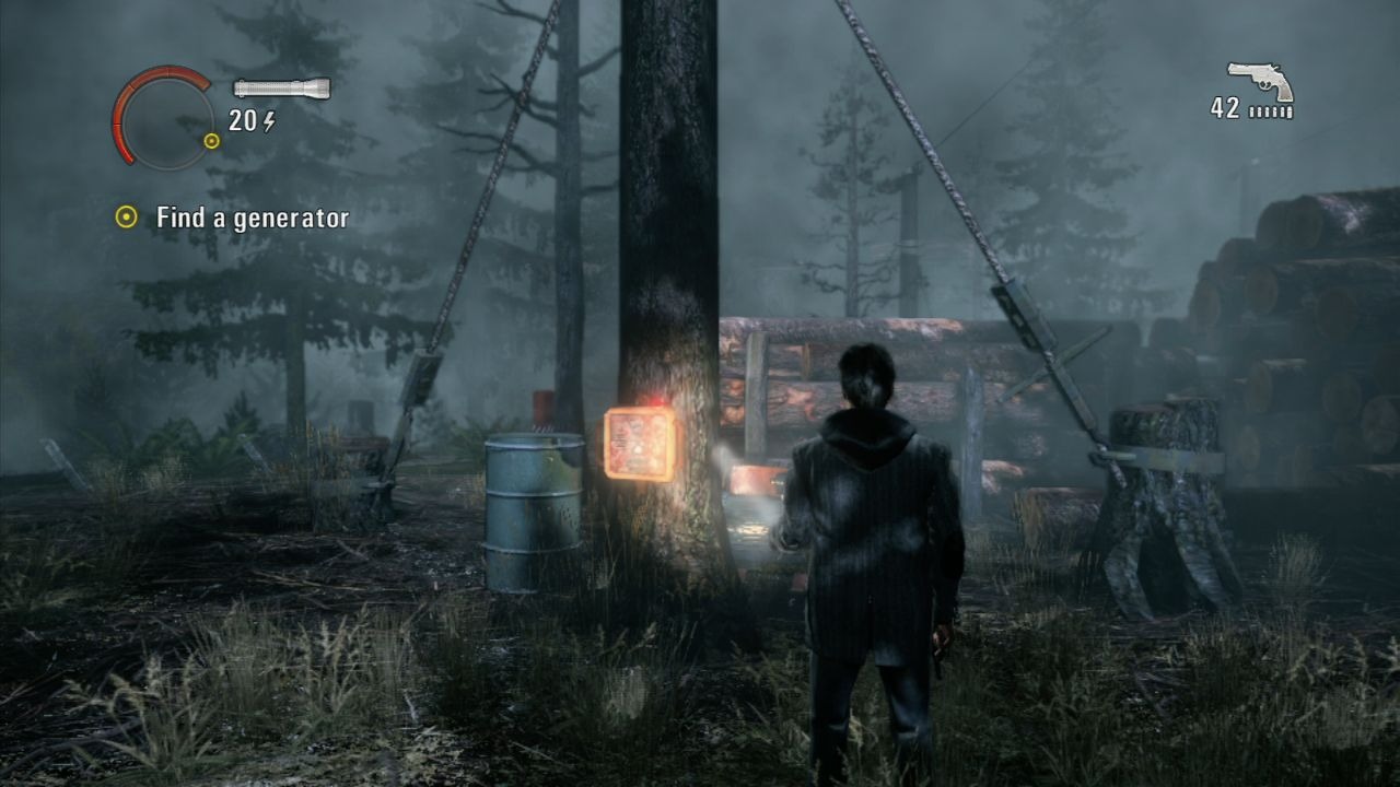 La lumière nous permet d’enquêter sur les événements survenant à Bright Falls et tenter de retrouver Alice. Rallier un lieu ou discuter avec les habitants sont deux des principales activités. Il ne faut pas s’attendre à un monde ouvert puisque les environnements restent confinés et pas question de s’écarter du chemin prévu. Au mieux, un léger détour est possible mais Alan Wake se veut un titre linéaire au possible.