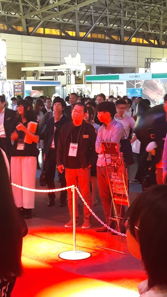 Le stand Sega était situé dans le hall 6, au croisement de celui de Konami et Square Enix. L’attraction du stand était sans aucun doute possible les hôtesses de Yakuza 6, certaines ayant même gagné le droit d’être modélisées dans le jeu. Sega – intitulé Sega Games sur le plan du salon – a énormément misé sur ce phénomène, d’où l’idée, d’ailleurs, de placer sa scène du même côté, et les deux vers l’allée centrale. Elle a ainsi pu présenter des footages de Yakuza 6 mais également de titres non jouables tels que Sonic Mania. A croire que Sega a décidé de revenir dans le camp des éditeurs qui marquent. Il était aussi amusant de rentrer aux côtés de Yu Suzuki et de le croiser de nouveau dès la première heure du salon devant le stand Sega. L’entreprise du hérisson s’est logiquement octroyée les deux faces du stand orientées public et a laissé celles face aux murs à ses partenaires comme 5pb ou Nippon Ichi. Le cadre était moins glamour mais non moins intéressant pour découvrir des titres moins médiatisés. Le stand Sega en photos :