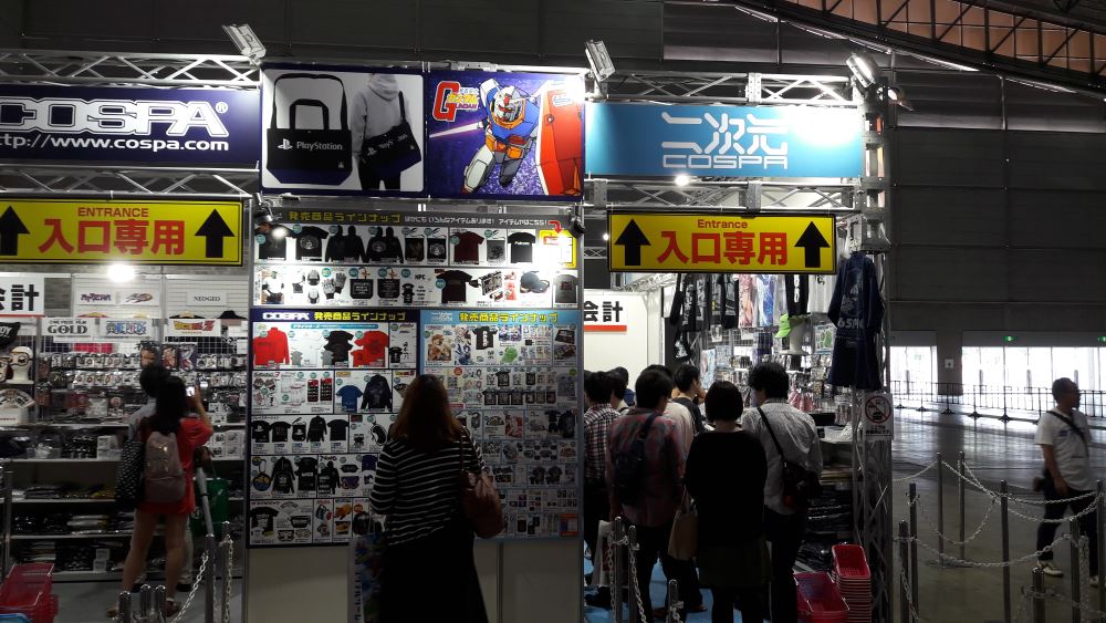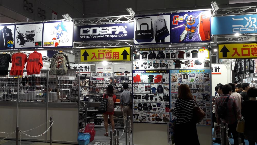 Les boutiques, évidemment, étaient un lieu particulièrement fréquenté. Goodies, vêtements, figurines, peluches sont autant de marchandises présentes sur les lieux. Les grands éditeurs étaient bien évidemment représentés et il faut avouer que la boutique Sega se démarquait nettement du lot par le nombre hallucinant de goodies de qualité. Tee-shirt Sonic Anniversary, tasse Persona 3 (oui 3 et sold out en 2 heures de salon), accessories set Persona 5, sacoche Dreamcast, … le choix était au rendez-vous, au détriment du portefeuille. Ci-dessous quelques photos pour vous donner une idée.