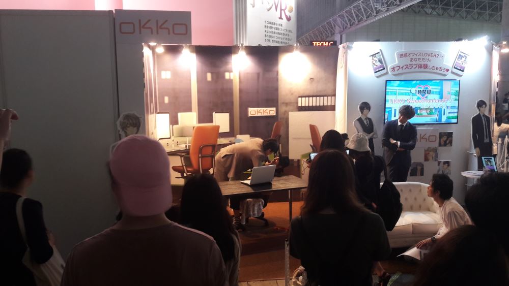 Extrêmement présents, les stands sur les jeux de drague, comme on les appelle souvent en Europe, étaient très présents. Il y avait pas mal d’Otome Games, ces visual novels dans lesquels une jeune fille est entourée de bellâtres parmi lesquels elle doit choisir. Le public féminin japonais était au rendez-vous et il faut avouer que les acteurs présents s’investissaient tellement que le spectacle était au rendez-vous.