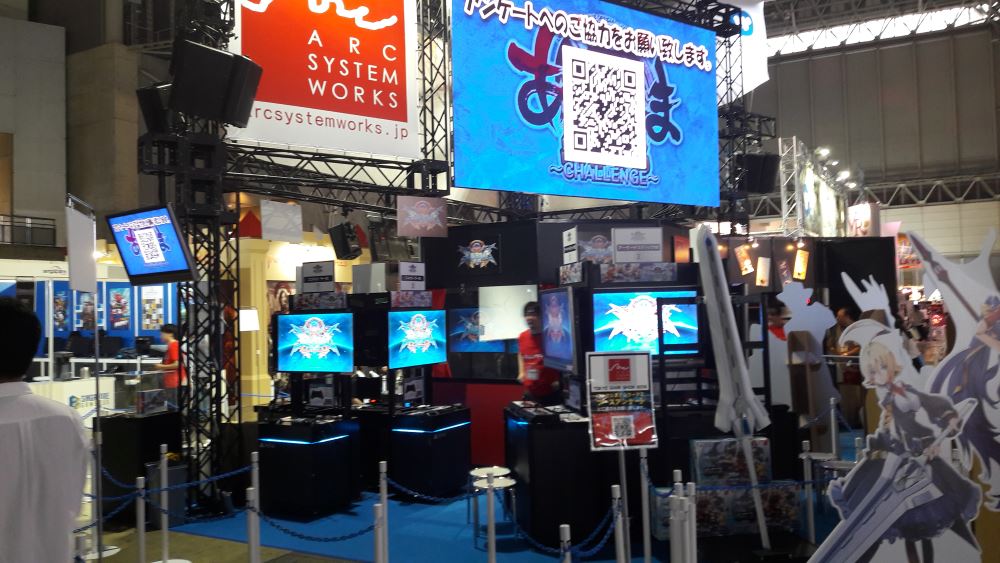 Plutôt petit, le stand d’Arc System Works ameutait tout de même un lot de fans suffisants pour occuper les lieux. Entre le dernier épisode de Blazblue et des vidéos de Kunio-kun, il y avait de quoi prendre quelques photos souvenir. Arc System Works est qui plus est un développeur que nous apprécions. Voilà, clin d’oeil.