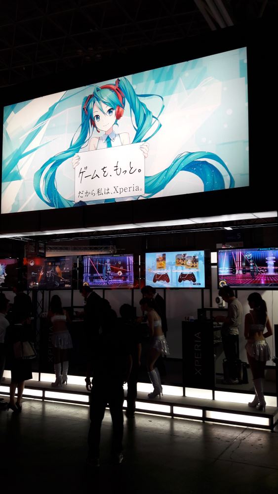 Contre toute attente, l’espace des jeux mobiles n’était pas si important : la rangée du milieu des halls, soit 1/3 des principales salles du Tokyo Game Show 2016. Le stand qui attirait très certainement le plus de monde était le stand Xperia, entre les nombreux (pseudo-concerts) de Hatsune Miku (avec les cosplays qui vont bien), les bornes jouables de Project Diva et Yakuza et le ratio de presque 1 hôtesse, 1 joueur, les japonais étaient aux anges.
