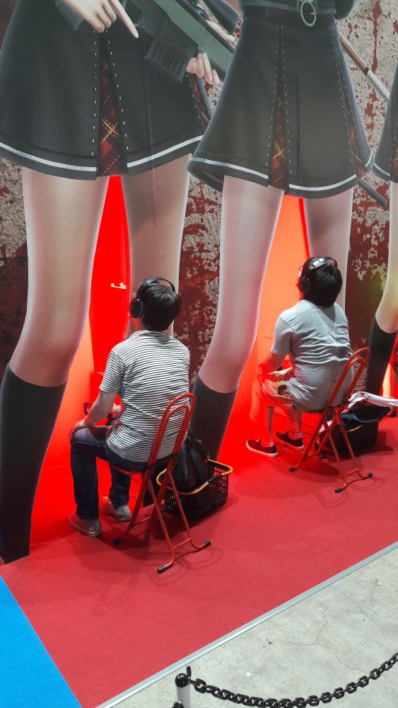Le stand D3 Publisher était l’un des derniers accessibles lors des journées business et le premier lors des journées publiques. Non pas qu’il changeait de place, mais l’entrée se faisait différemment. Fait étonnant quand on voit le line-up de niche proposé par l’éditeur nippon, et ce sans compter sur ses jeux graveleux et ses hôtesses fort peu vêtues. Mais bravant tous les interdits, vos serviteurs se sont faits violence pour découvrir de quoi il retournait. Sacrifice, tout ça.